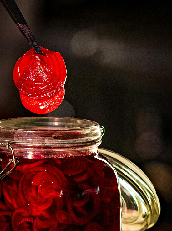 Arrange the sliced beets in one to two sterilized jars (like the jars used for jams). Pour in the pickling solution, leaving about one inch headspace. Stir the solution lightly to remove any air bubbles. Seal with a lid and refrigerate for at least a few hours before serving.