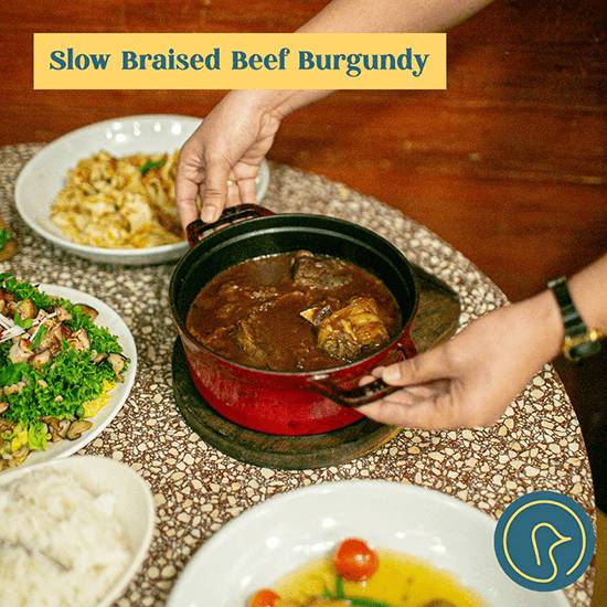 Moreover, treat yourselves with the Slow Braised Beef Burgundy. This show-stopping stew consists of beef ribs and pork belly in red wine burgundy sauce, slow-cooked in a Dutch oven for six hours.