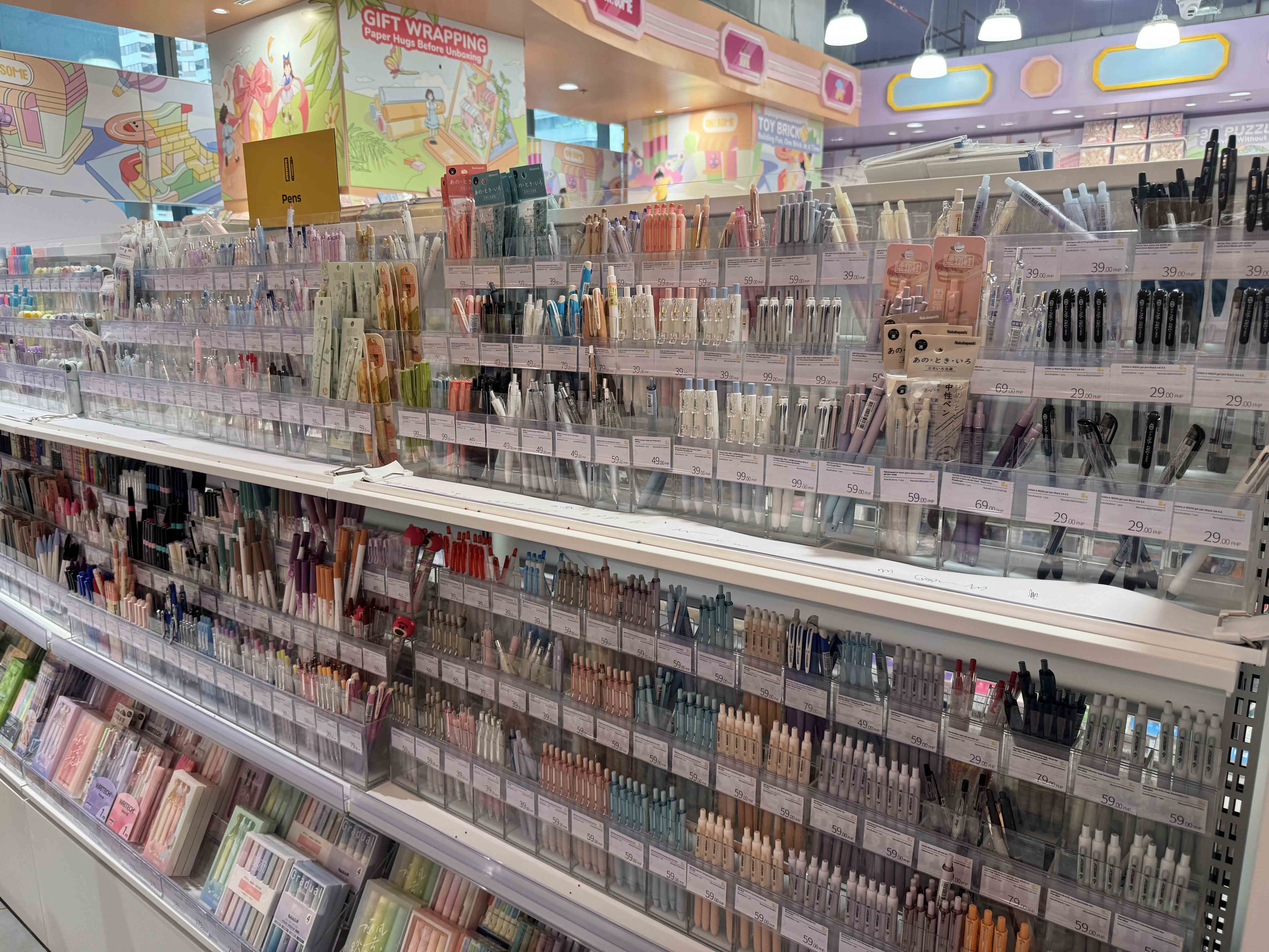 Meanwhile, stationery is a dream for journal enthusiasts, filled with pens, notebooks, stickers, and even wrapping paper. We found gel pens that are priced between P29 and P59, 12-piece acrylic markers at P239, and more.