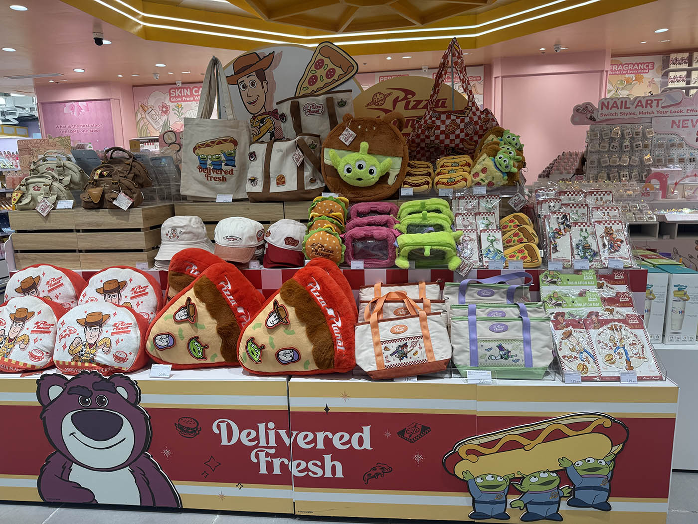 A personal favorite is the Pizza Planet collection from Toy Story. There, you'll find caps at P399, tote bags starting at P319, and plush pillows at P559.