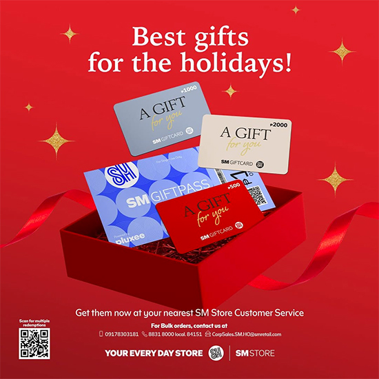 Your more practical giftees can even use SM Gift Cards and Gift Passes for essentials like groceries. They’re accepted at SM Supermarket, SM Hypermarket, Savemore Market, WalterMart Supermarket, Alfamart, and Mindpro Supermarket.
