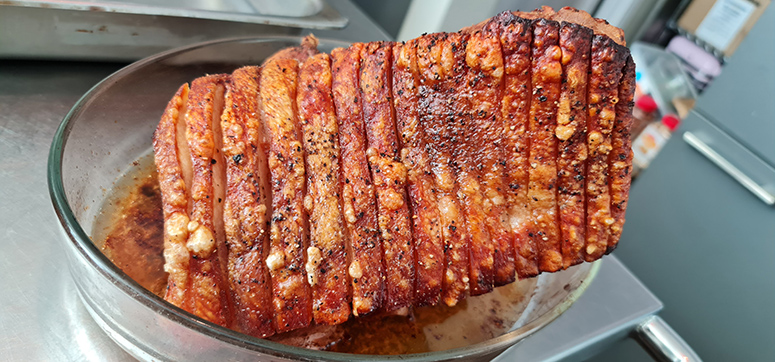 I always get excited to eat whole hams, such as Chinese-style ham or the whole glazed baked ham, which my dad always gets and, of course, the lechon. We still buy the whole ham we have for Christmas these days, but we make our own glaze. As for the lechon, we roast our own lechon belly or whole shoulder of pork.