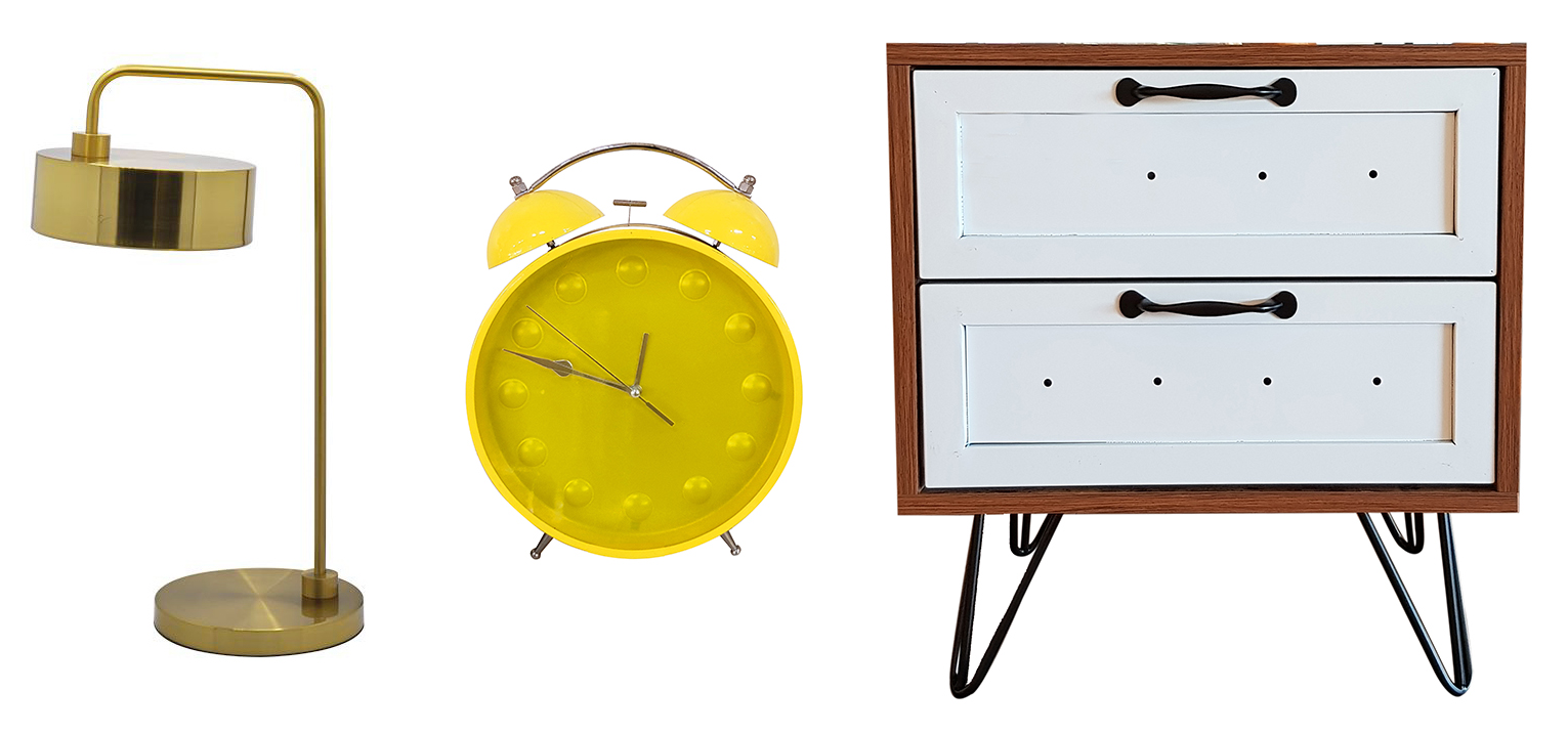 Most people also tend to read before dozing off so having an Alphalux table lamp is beneficial for them while a bright yellow Heim alarm clock is a must for the early risers.