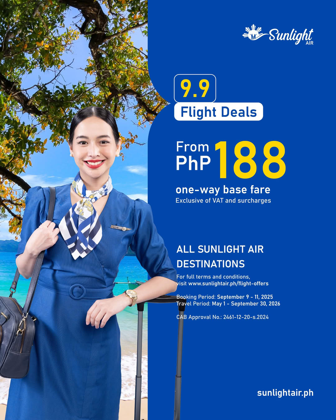 Sunlight Air is offering one-way base fares as low as P188 to all its destinations, including Coron, Siargao, Boracay, and beyond.