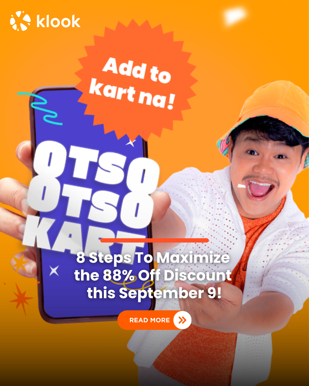 Make sure to download the Klook app and log in to your account. Add your chosen activities or travel deals to your cart ahead of time to avoid a last-minute rush. Double-check your cart total: Spend P10,000 to unlock the P8,800 discount or spend P8,000 for the 8% off deal. After that, apply the discount at checkout, confirm your booking, and you’re all set.
