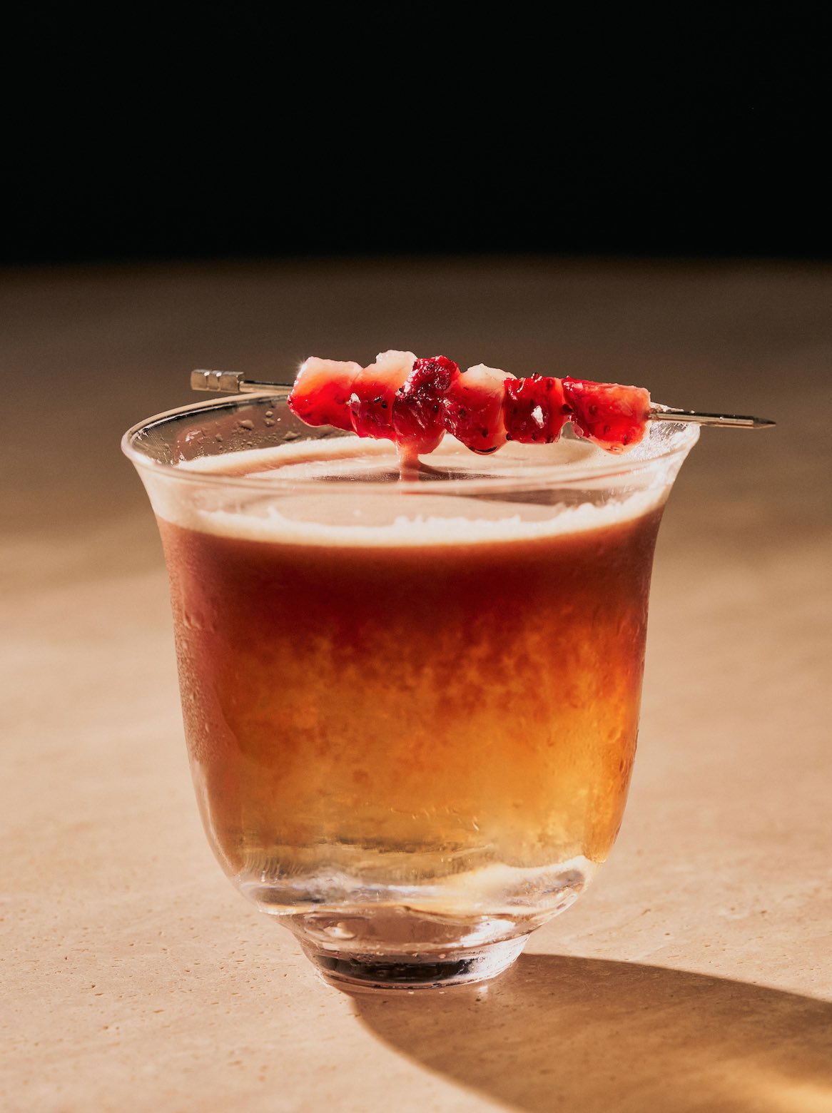 If you're up for something that gives off a distinctive note, try Balsamic Sour. “Think of it as a salad, reimagined as a cocktail," she explained. "It's paired with salted strawberry garnish to complement the vegetal notes, so it leans adventurous but remains approachable and almost always surprises people with how easy it is to drink."