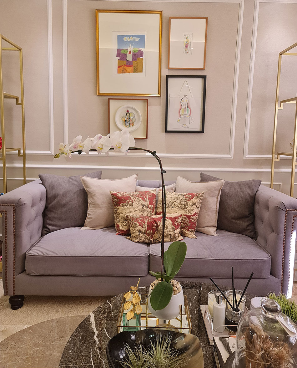 My style is very eclectic. As much as I appreciate symmetry, I don’t like things that are matchy-matchy. So, I like mixing up my toile de Jouy and moldings with earthy or rustic elements like a rattan chair. I like creating interesting nooks and crannies with special little things that make me happy, be it art or fashion books, fragrant candles, gifts from loved ones, or special finds from trips abroad. And flowers — lots of flowers!