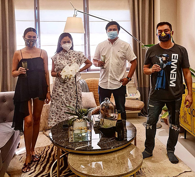Creative foursome: Apples, Cyndi and Mado Beltran and director Mike Carandang. They filmed the reveal of Apples’ home for Cyndi and Mado’s YouTube show called Mr. & Mrs. B of Moss Design House.