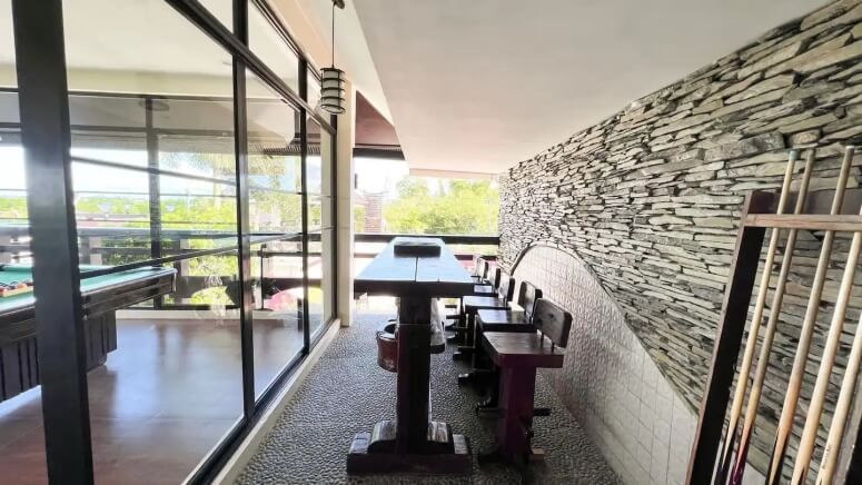 The villa can cater to up to 12 guests with 3 rooms available. It has a pool table in its lounge area where you can bond with your friends. You can also sing your heart out with your family in their karaoke room near the swimming pool area.