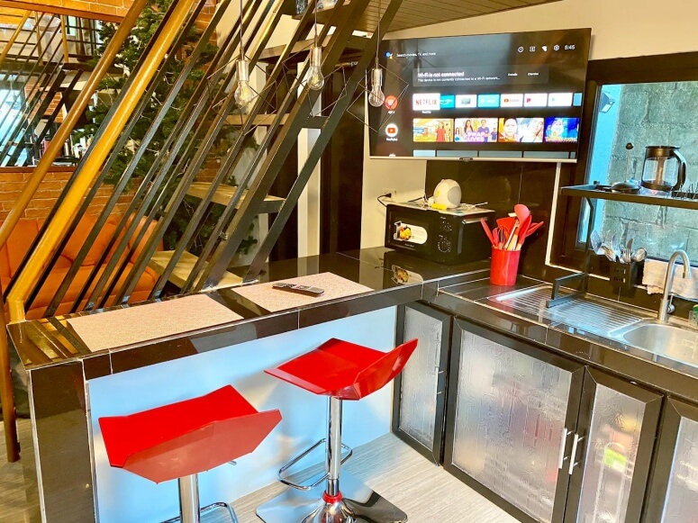 If you’re looking for a “home away from home” type of vibe, maybe Marcus’ Loft in the municipality of Indang is the one for you. This loft with two bedrooms is perfect for families or a small group of barkada who are looking for a getaway. It is complete with a living room space and kitchen with appliances.