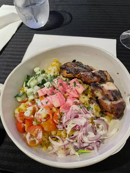 I tried the highly recommended, reasonably priced chicken shawarma variant. Unlike Crickette, who like most people mixes all the contents of their rice bowl together, I enjoyed all the perfect components by themselves.