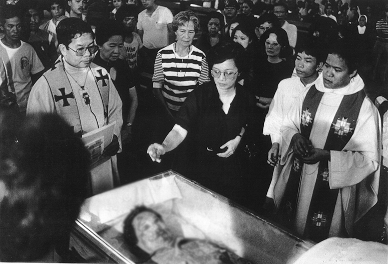 “I saw Ninoy’s bloodied and bruised body in the coffin and I was telling Ninoy, ‘Ninoy, tell me what I should do.’ When I kissed him, I promised him that I would continue with the struggle, never thinking then that I would become president. I kissed him on the cheek, and it was hard. I did not break down. I held his hand. And it was softer… But I couldn’t even stay long because I saw all the people outside waiting to come in,” Cory told me.