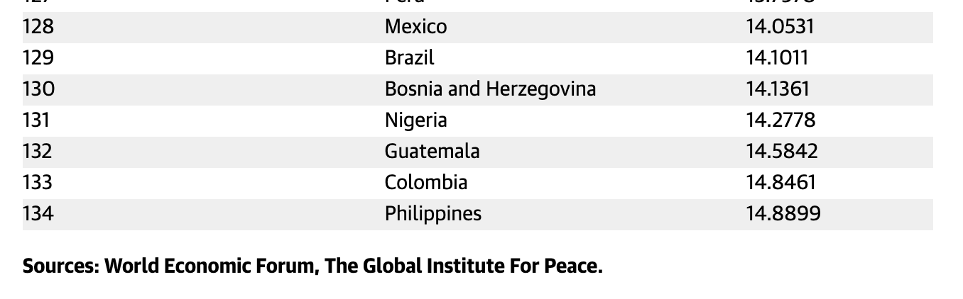 According to the global index, the Philippines is described as a country with a “serious civil conflict that has high risks from a natural disaster.”