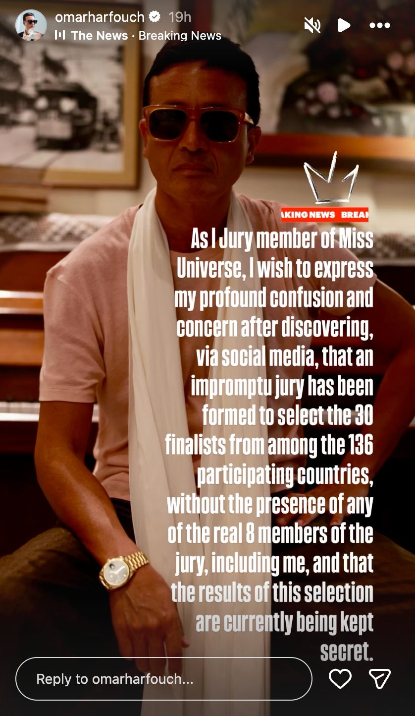 "Mr. Omar Harfuch, who had previously agreed to serve as one of the eight official members of the Miss Universe judging panel, published a statement expressing confusion and claiming lack of understanding regarding the scope and nature of a social impact program such as Beyond the Crown," the organization said.