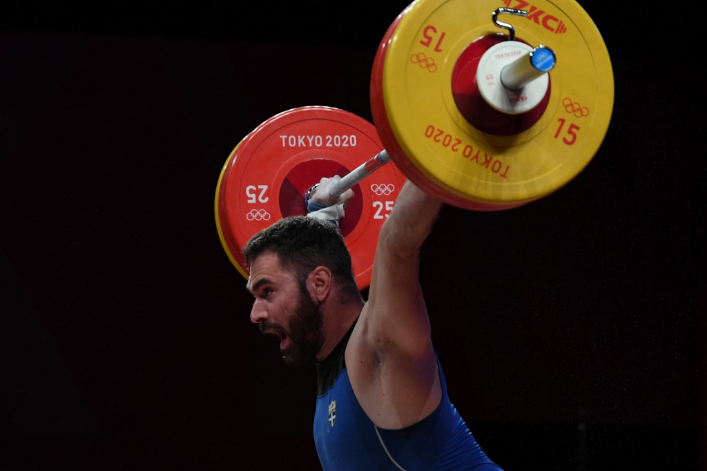 Greece's Theodoros Iakovidis competes in the men's 96kg weightlifting competition during the Tokyo 2020 Olympic Games at the Tokyo International Forum in Tokyo on July 31, 2021. Luis ACOSTA / AFP