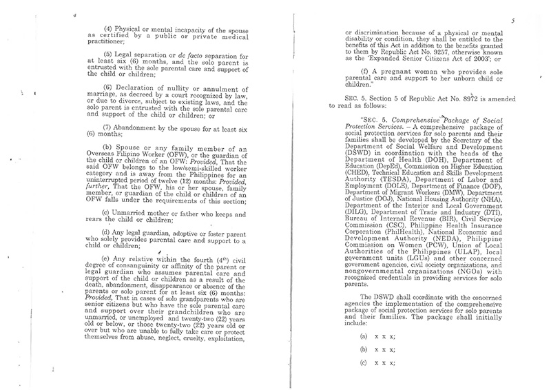 The measure also directs the Department of Education, Commission on Higher Education, and Technical Education and Skills Development Authority to provide scholarships to qualified children of solo parents.