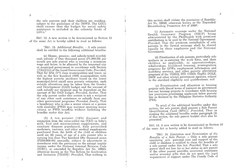 New law grants solo parents additional benefits
