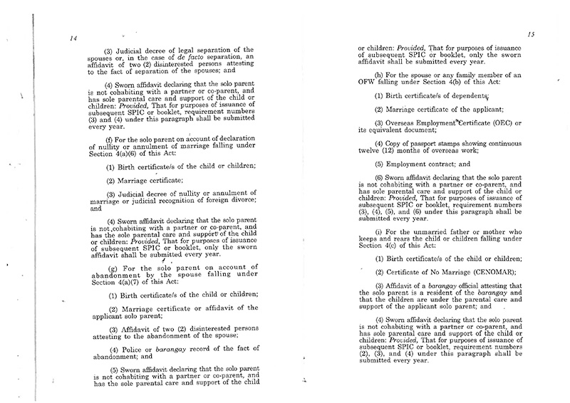 To avail of the benefits, individuals who fall into the categories must get a Solo Parent ID which can be procured at their local government unit's Solo Parent Office.