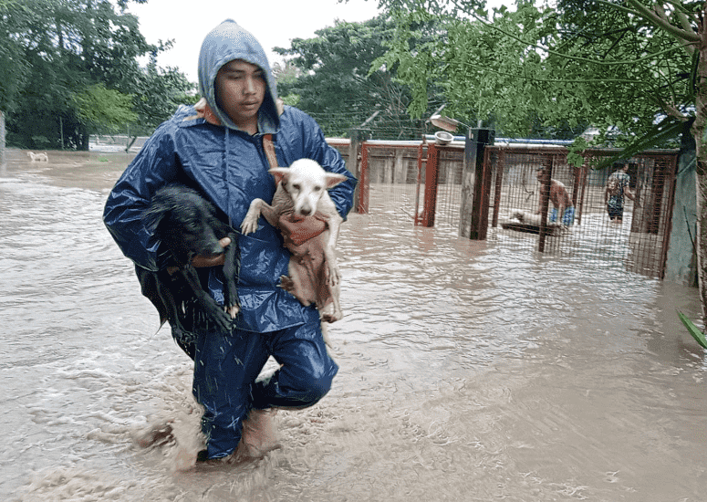 On Facebook, Aklan Animal Rescue and Rehabilitation Center posted pictures of their staff braving the murky waters in order to save the homeless dogs in their facility. They are now seeking financial assistance from kind-hearted individuals as many of their dog kennels got damaged.