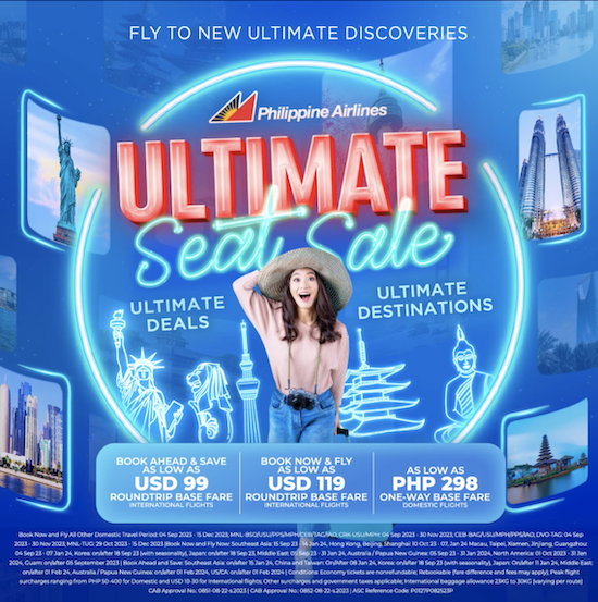 The flag carrier dropped the news on social media Monday with the caption, "It's back!! Philippine Airlines is bringing back the ULTIMATE SEAT SALE! Ultimately low fares, ultimately for all with over 7 million seats on sale!"