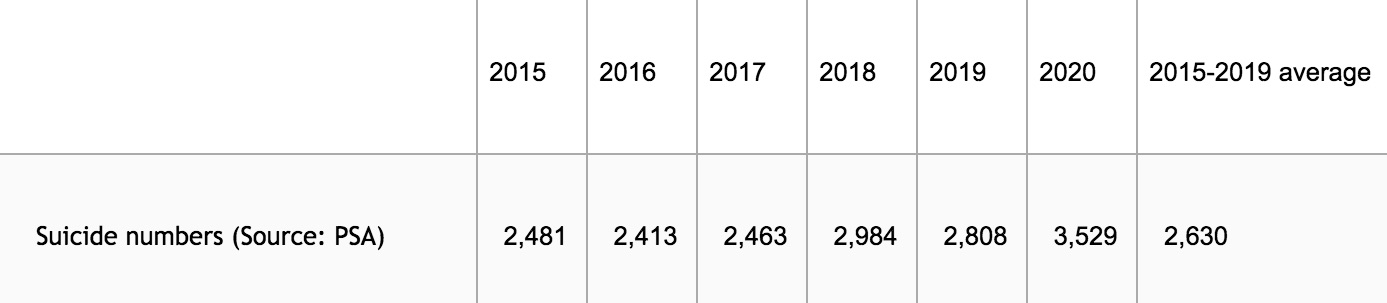 The number of hotline calls received by the National Center for Mental Health in 2020 also shot up to a record of almost 400 daily from 80 calls before the lockdown.
