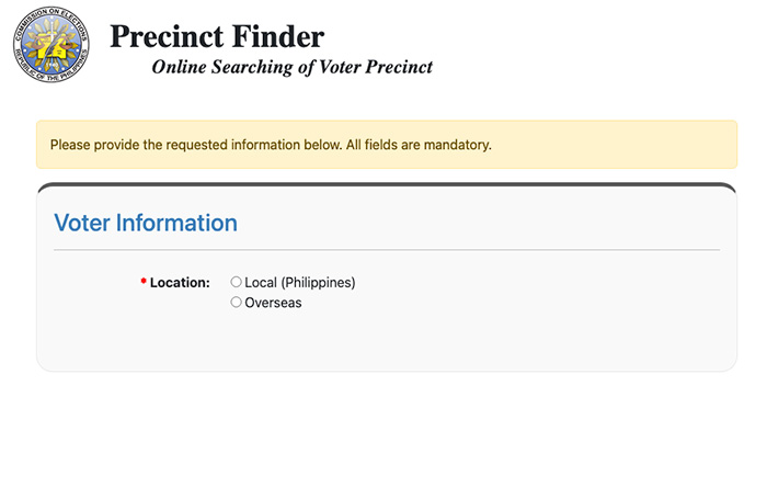 Upon visiting the site, you'll choose your location—are you voting locally in the Philippines or overseas?