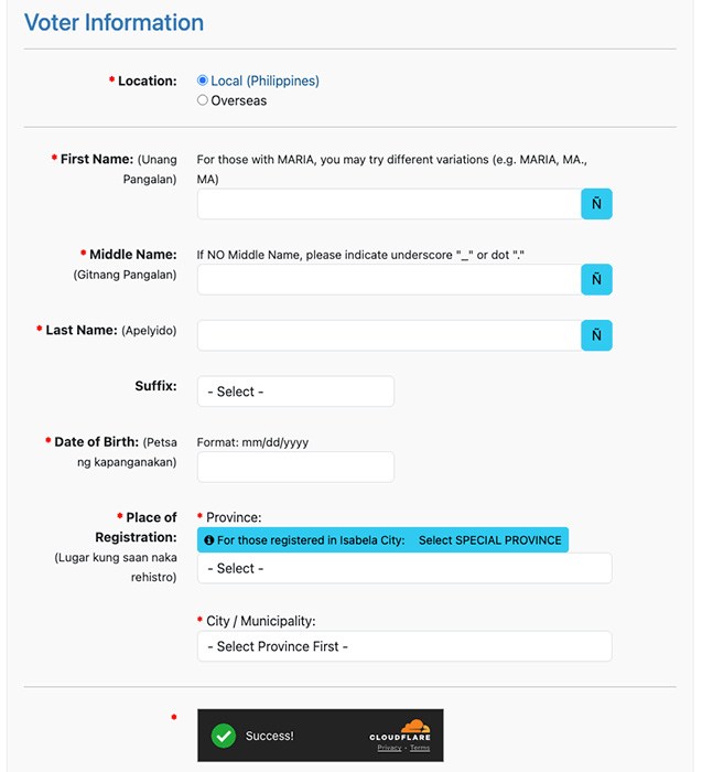 You'll then be asked to fill in details like your full name registered with Comelec, date of birth, and place of registration.