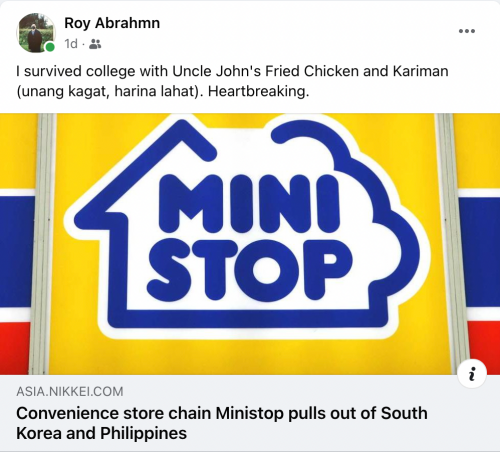 Facebook user Roy Abrahmn lamented the "heartbreaking" news, saying he survived his college days through Ministop's bestsellers.