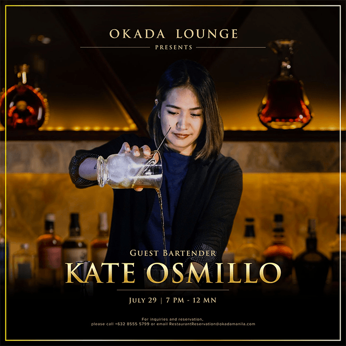Okada Lounge, the Forbes Five-Star integrated resort’s upscale intimate cocktail lounge, presents national bartending champion Kate Osmillo as its first-ever guest bartender for a one-night-only engagement on July 29 from 7 p.m. to midnight.