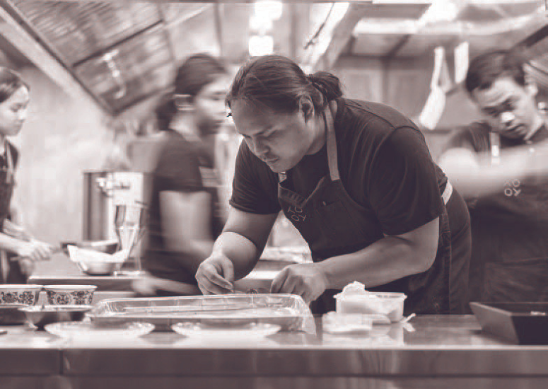 In the kitchen, there are a few schools of thought. Traditionally, it’s always been an aggressive and uncompromising environment. People want to eat and they need their food quickly and at top quality. Everyone eats so everyone knows what their idea of good food is. It’s a high-pressure environment but ultimately, the goal is to make people happy and enjoy the moments that they spend with us when they eat. Sometimes the aggression gets the best of the work environment and we tend to forget the real goal—to make people happy and have them leave full and satisfied.