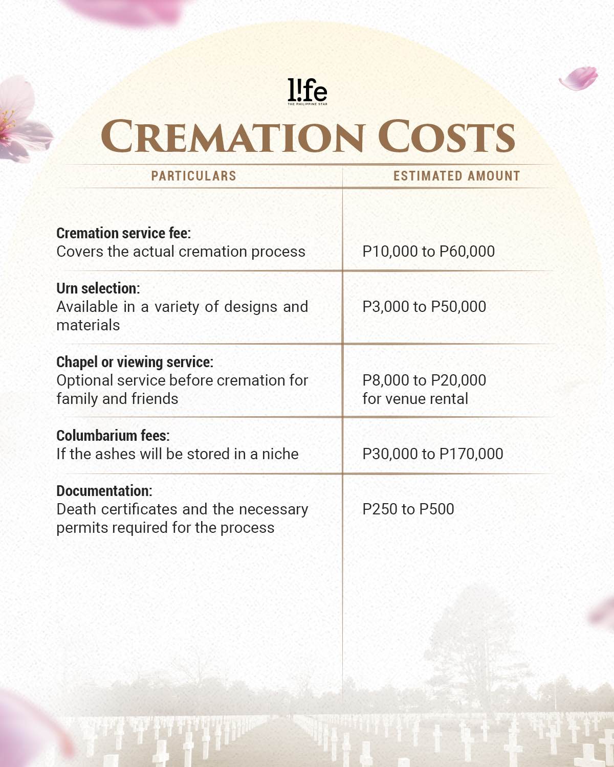 Aside from burial, a cheaper alternative to honor the deceased is cremation, which Reyes said generally involves fewer steps but still carries several essential cost components.