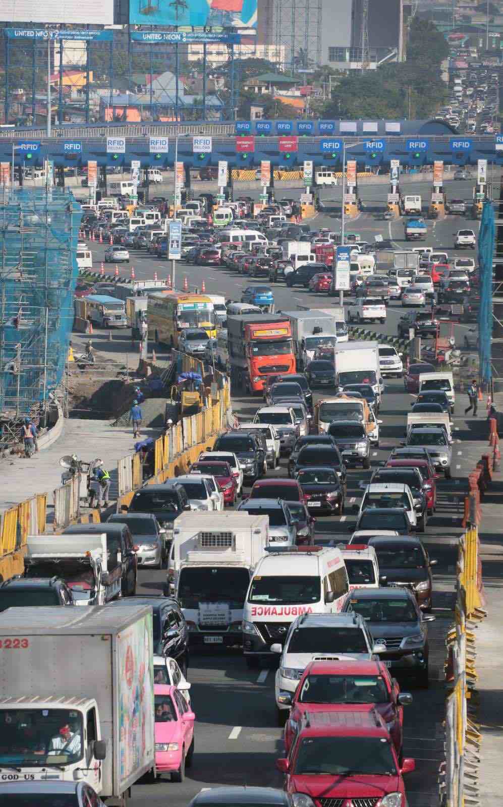 The kilometers-long traffic today and the past few days has prompted the Department of Transportation (DOTr) to move the deadline of RFID installation on vehicles from Dec. 1 to Jan. 11, 2021.