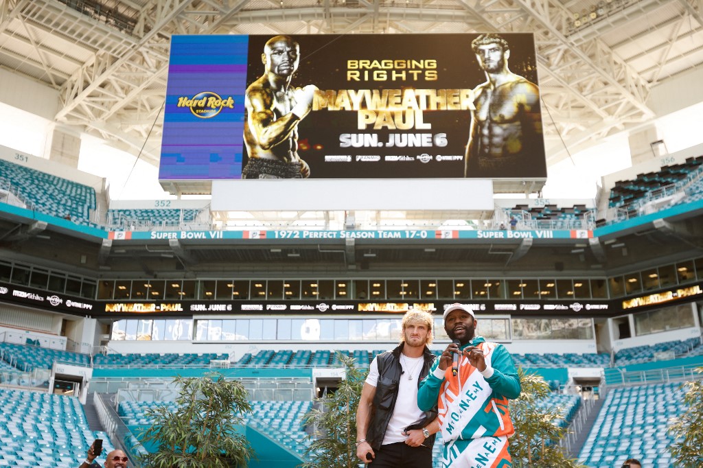 The undefeated 44-year-old former welterweight world champion reacted angrily at the Hard Rock Stadium after Paul's brother, Jake, grabbed his cap during a TV interview.