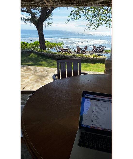 I now look at and feel my surroundings intensely, especially in nature. I saw a double rainbow last December and I was awestruck at its beauty. I kept on thinking that it was a sign from God. I felt at peace, instead of the usual anxiety, when I did with my WFH duties with a spectacular view of the ocean. I called it WFI, meaning “Work From Island.”