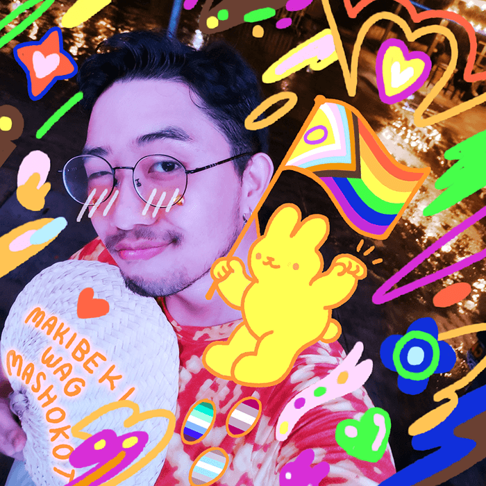 JOMER: (Kapag) gumagawa ako ng LGBTQ+ art, nilalagay ko talaga yung representation. Kung gagawa ako ng bakla, gagawa rin ako ng tibo. Before, yung mga friends ko gumawa ng zine at doon ko talaga naexplore yung pagiging queer ko. Yung story na nilalabas ko is very personal: it was about me being raised by so many women nung kabataan ko. It eased me into enjoying my femininity and naging easy sa’kin to enjoy yung current identity ko.