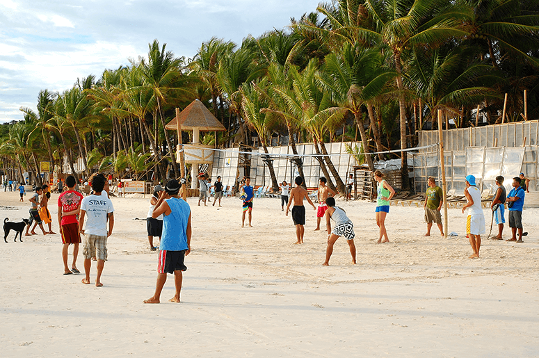 White Beach in Boracay, facing westward and known for beautiful sunsets, is about 4 kilometers long. The eastward 2.5-kilometer-long Bulabog Beach lies opposite White Beach and is more popular for windsurfing and kiteboarding.