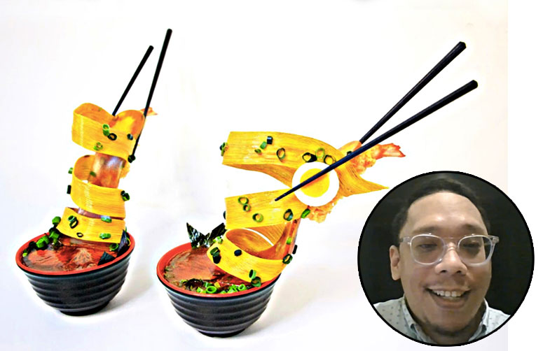 He thought it would be fun “to take this innocent little bowl of noodles and make it the hero of its own fairy tale. So it's a campy and humorous piece, and I think that it's something we need right now in this time of anger and fear and bad news.”