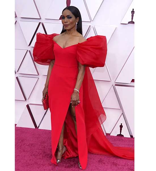 Angela Bassett went full drama with an Alberta Ferretti gown accented by a giant bow at the back with the loops as sleeves and the tails as train.