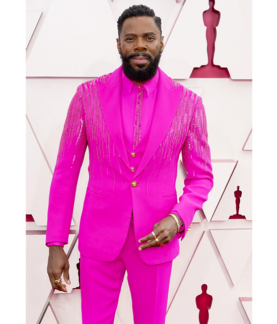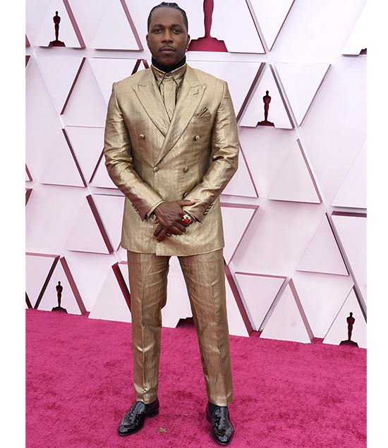 As a nod to the color of the Art Deco award statuette, many went for gold: Leslie Odom Jr., best supporting actor nominee for One Night in Miami, was gleaming in a Brioni suit made with 24k gold thread.