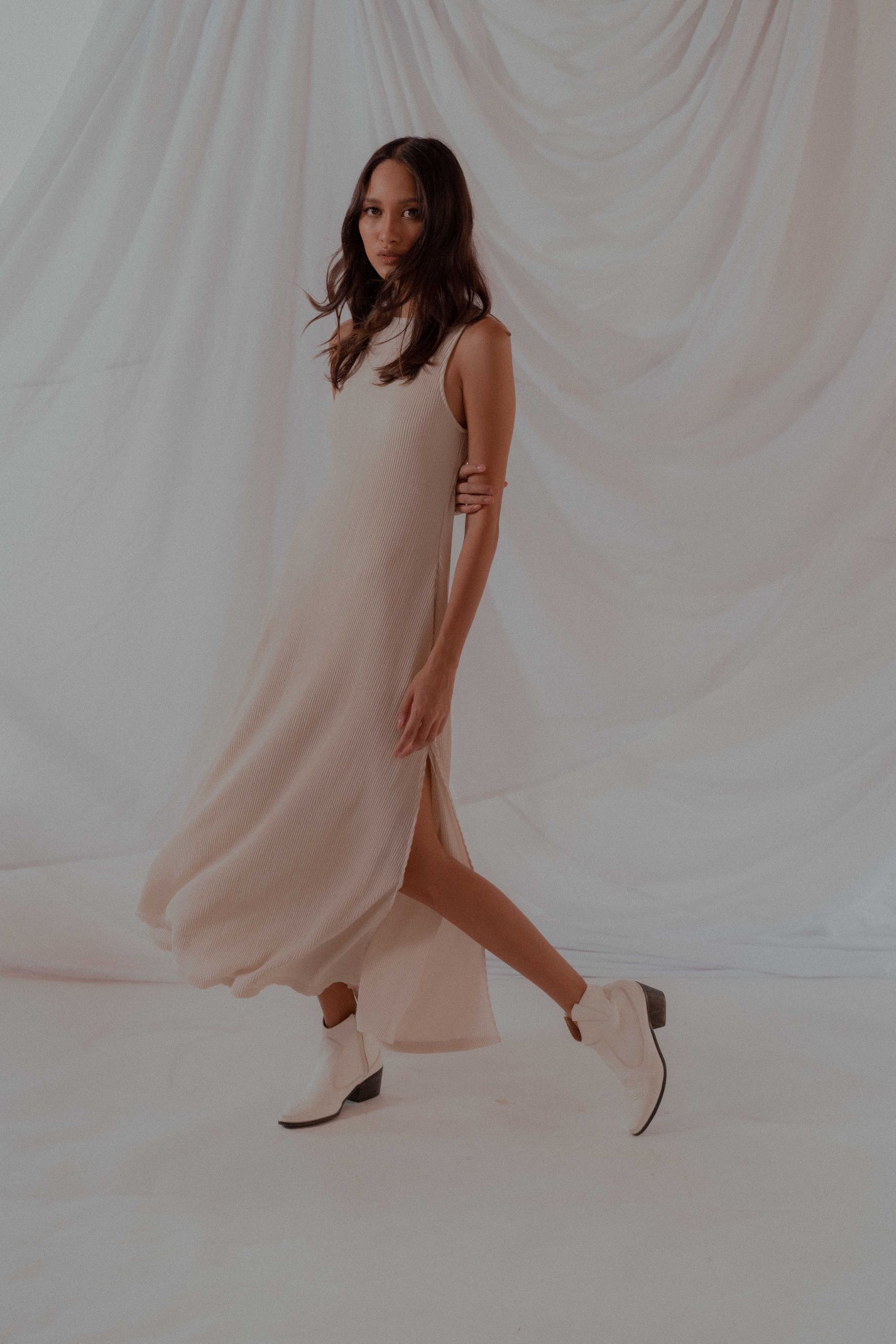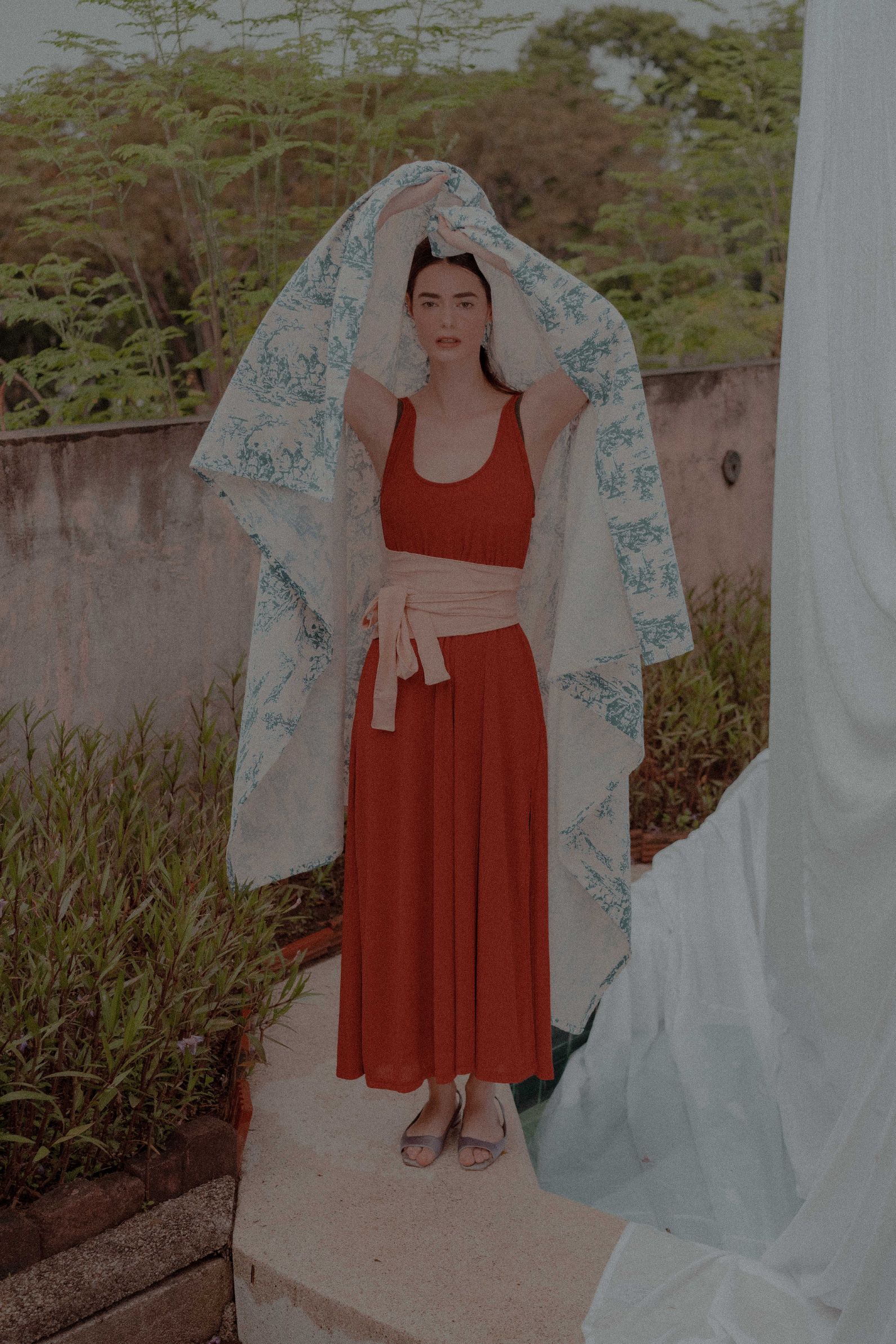 “The Mila dress is named after my mom in homage to her days of sundresses,” shares Meg, referring to a reversible sleeveless dress with pockets. “The Maila boiler suit is playfully named because I always joke that my sister is a hothead.”