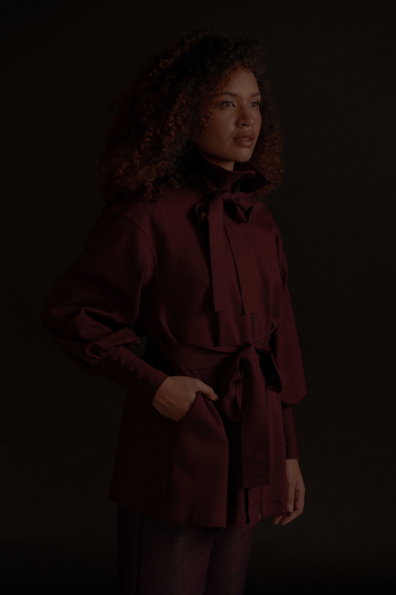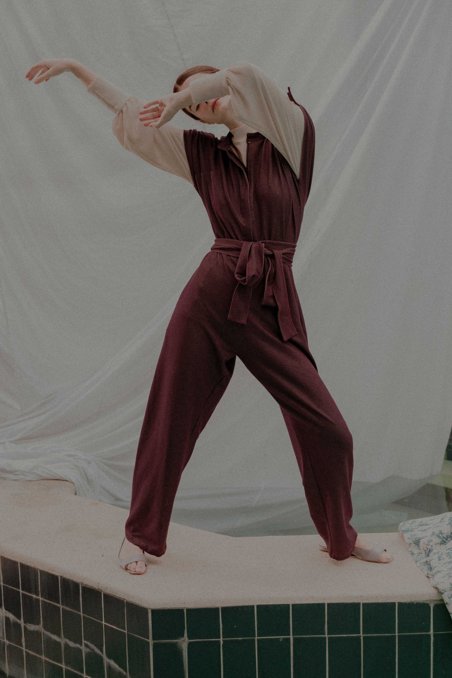 This collection has the sexy elegance of Meg’s style that the pieces can translate to ready-to-wear and be worn with items you already own. The Louella onesie in the collection, for example, has cap sleeves and works alone or under high-waist trousers, or under the Maila boiler suit worn halfway as trousers.