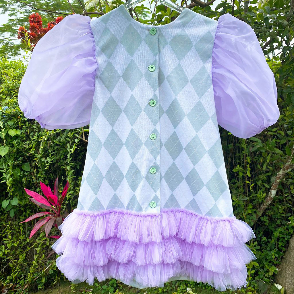 When I first saw Sassa Jimenez’s Birthday Dress, a confection of a frock with puff organza sleeves, boxy, argyle tricot knit body, finished off with a tulle hem as frothy as its namesake, it made me smile, even inspired me to dress up for dinner because… why not?