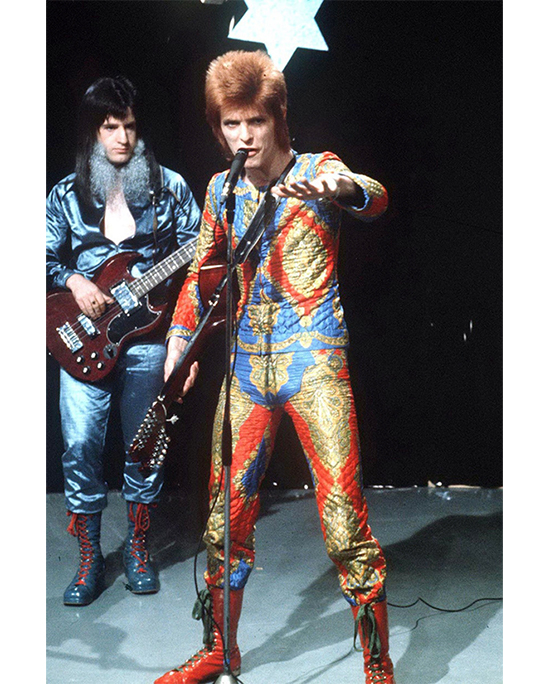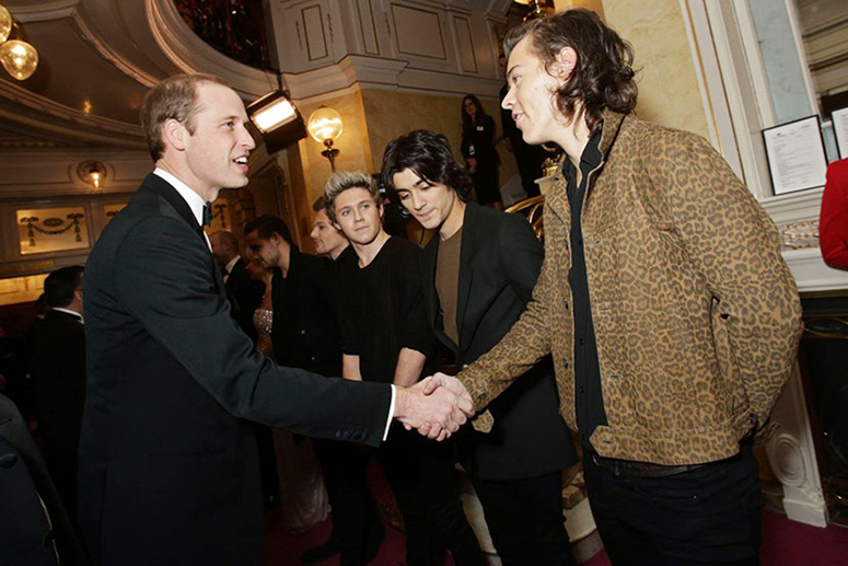 When they decided to go all-black for the Royal Variety performance in 2014, he added edge to his outfit with a leopard-print jacket by Saint Laurent, a brand that would reappear as a braided drummer boy jacket for the American Music Awards and a ruffled shirt for dinner with Kate Moss at Annabel’s.