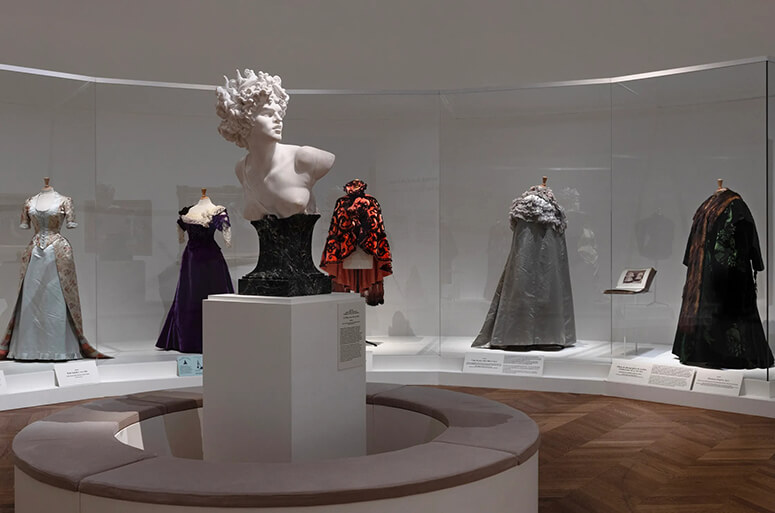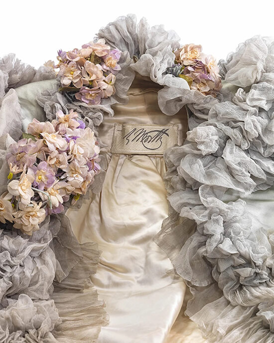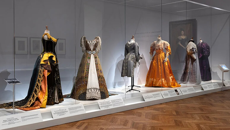 The number of pieces ordered by even one client could be overwhelming, considering the custom of the time to have so many outfit changes in a day, depending on the activity and occasion, as demonstrated in the exhibit’s panoramic staging of a wardrobe set from morning till night.