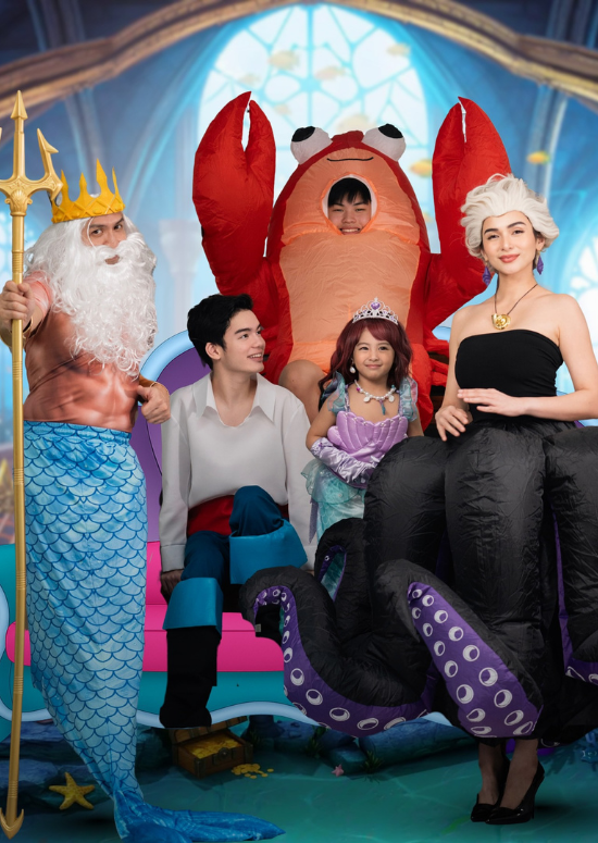 The Trillo family opted for the Little Mermaid theme this Halloween. Actress Jennylyn Mercado sported Ursula's look as her husband Dennis Trillo donned King Triton's look, while their children Alex Jazz, Calix, and Dylan channeled the characters of Prince Eric, Sebastian, and Ariel, respectively.