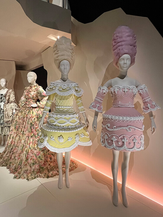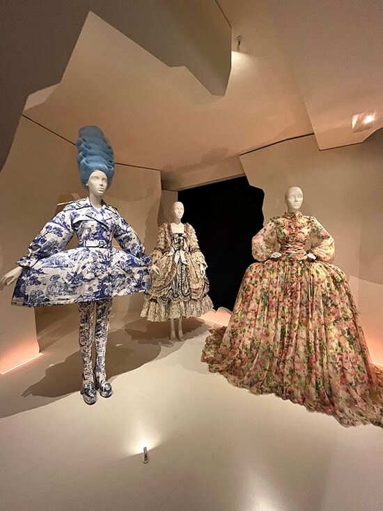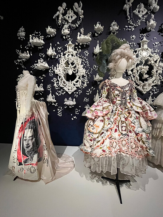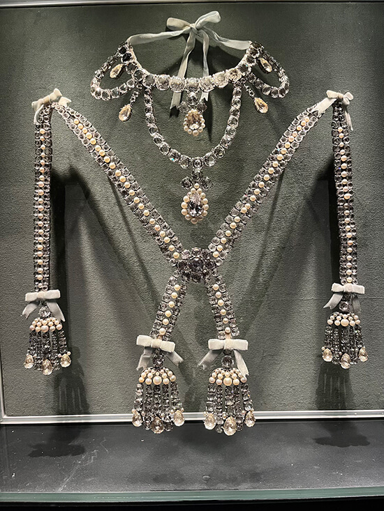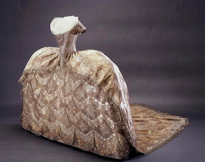 And they have, indeed, as the show explores her life and style, from that moment till today. Dress is certainly a potent tool of expression and a recorder of history with all its social and political indicators. Maria Theresa made sure of that, gifting her daughter with a wedding dress that spoke highly of the Austrian court, affirming that her daughter was the perfect match: a dazzling silver gown with a profusion of diamonds. From then on, every aspect of her dress and appearance would be scrutinized, discussed, and copied.