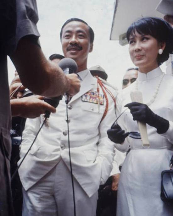 On another trip to Bangkok where he continued to court her, she witnessed him avert a coup in September 1964. Giving orders by phone for bombers to fly close to central Saigon, he kept on flirting with her in his usual self-assured manner. The coup factions ended up restoring order without any bloodshed and Tuyet Mai returned home, more smitten than ever with “the hero of her dreams.” After a whirlwind courtship, their romance blossomed into an extravagant wedding in November 1964.