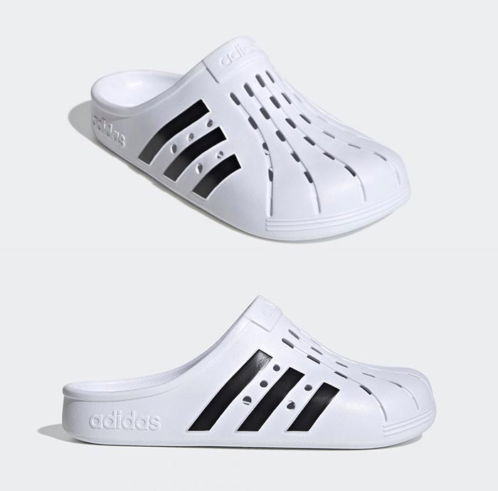 Launched on October 4 in the US, the adidas Adilettes set off a "slouchy-casual vibe" with its synthetic uppers and contoured EVA foam footbeds. It is inspired by the adidas Slides, and likewise, comes with the brand's iconic three-stripe insignia on the sides. The clogs come in two colors—"Core Black" and "Cloud White."