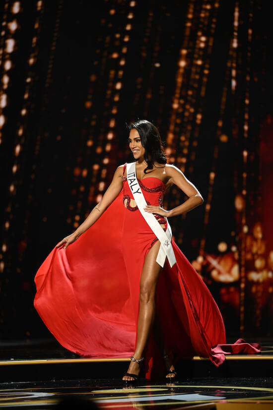 86 of the universe's most beautiful women modeled on stage wearing their gorgeous evening gowns in front of the distinguished all-female judges during the preliminary evening gown competition of the 71st Miss Universe pageant.