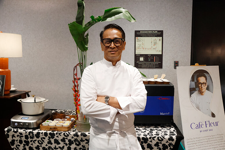 This year, Habi is featuring Pampanga-born and French-trained chef Sau del Rosario, known for his dedication to promoting Kapampangan heritage through contemporary culinary expression at his restaurants Cafe Fleur, 25 Seeds, Joop Joop, and Sawsaw. “I’m showcasing Pampango dishes like bringhe, sisig, kare-kare, and palabok which, in Pampanga, we call luglog. Aside from heritage cuisine, I’m also featuring pastries outside the exhibit room.”